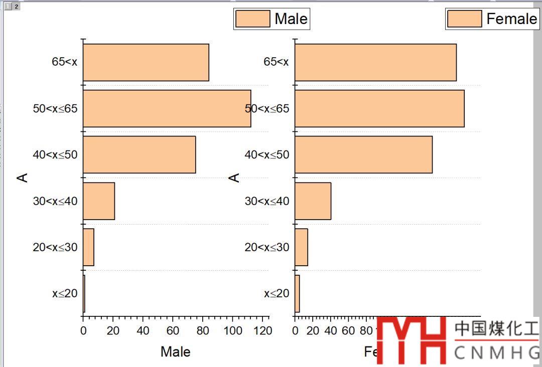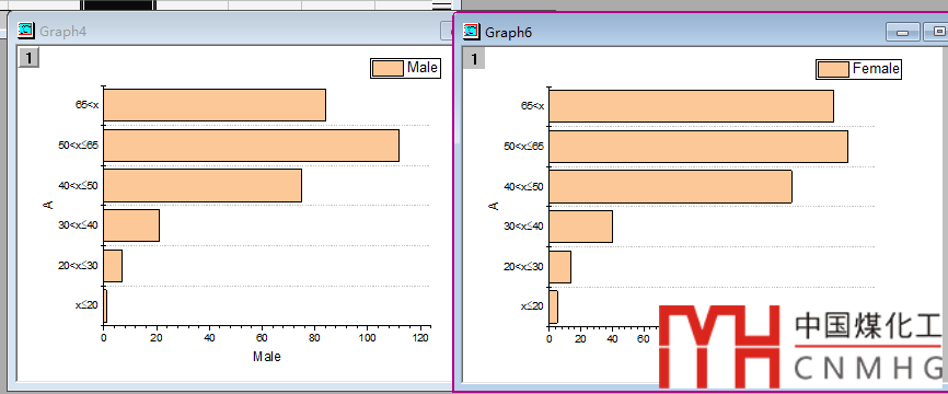 組合圖形:使用merge功能,組合上面繪制的兩個(gè)圖形,1行2列,其中男性的圖在左邊。【在微公號(hào)“數(shù)據(jù)繪圖”后臺(tái)回復(fù)merge,查看更多關(guān)于圖層合并的詳細(xì)教程】