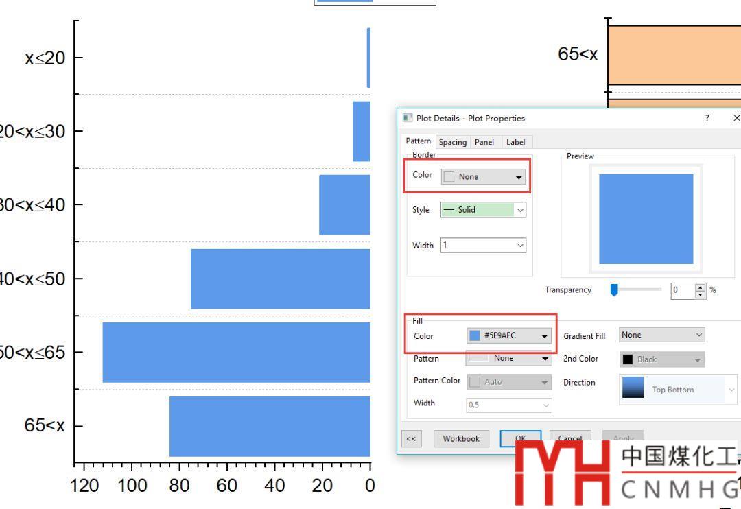 在Plot Properties里,將條形圖的邊緣顏色選為none,填充色選為淺藍(lán)色。