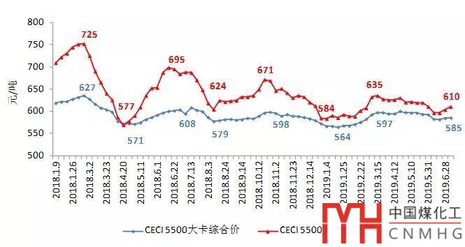 中國沿海電煤采購價格指數(shù)(CECI沿海指數(shù))5500大卡周價格圖
