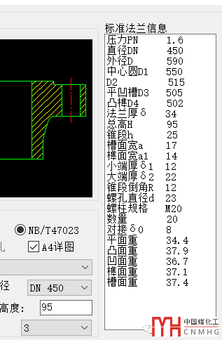 為了方便尺寸的查詢,在設(shè)備法蘭的側(cè)面增加了主要尺寸的展示。通過選擇壓力等級,規(guī)格可以得到主要尺寸。對于法蘭的的計算是非常方便的。如果電腦采用的雙屏,可以一屏幕顯示尺寸,另一屏幕在SW6或者PVElite計算書中對法蘭尺寸一頓狂輸入。