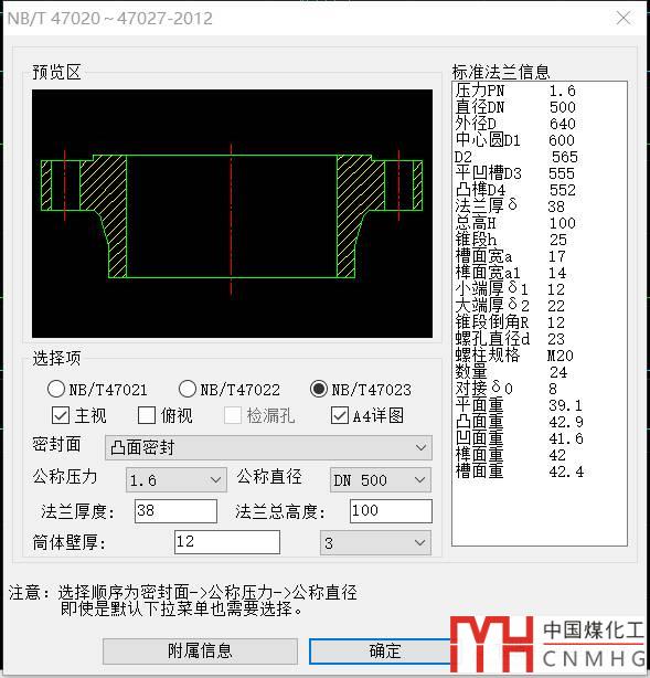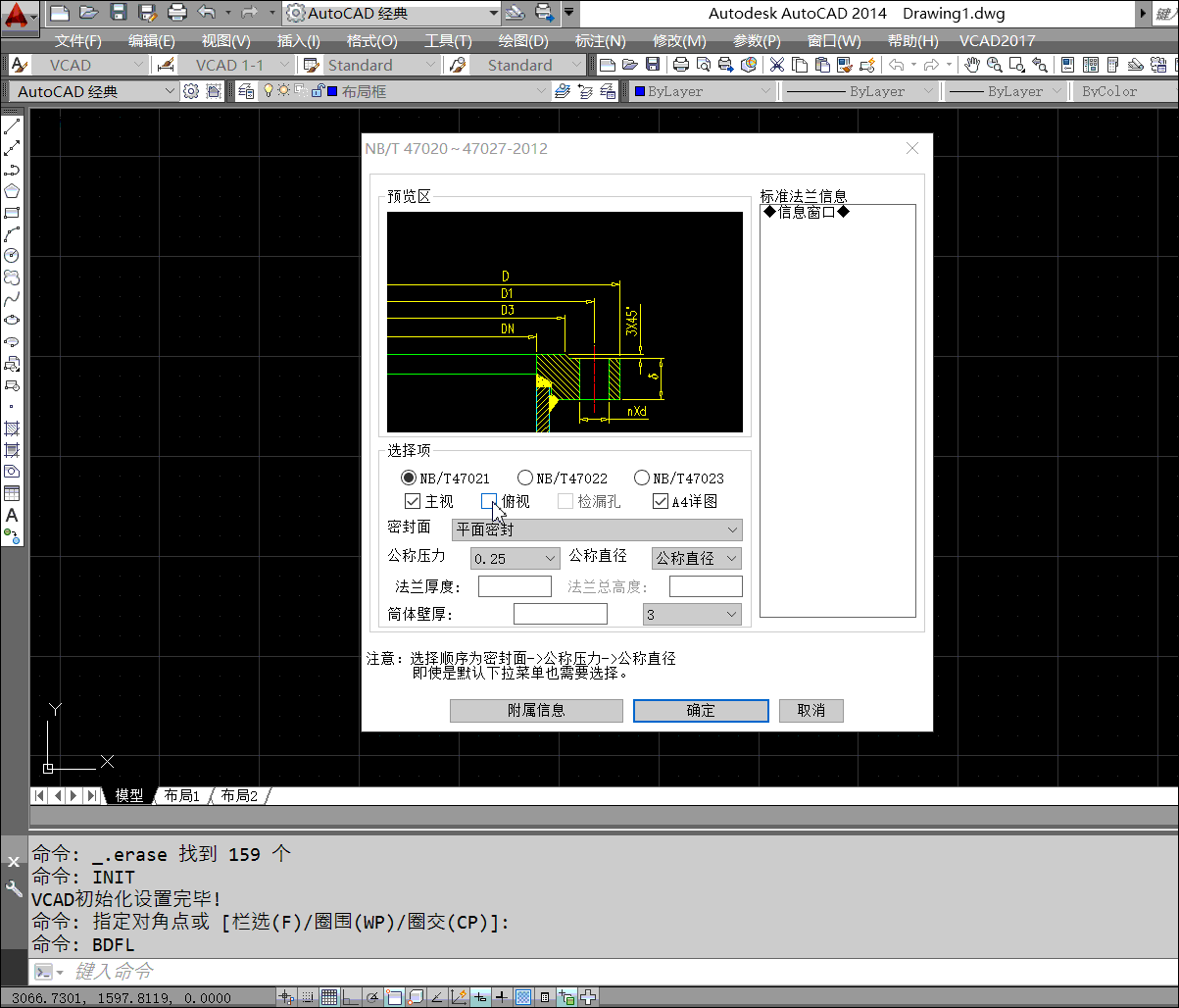 下圖顯示了如何繪制NB/T47021和NB/T47023的法蘭,注意:選擇時需要從上到下,從左到右,即使是默認(rèn)下拉菜單也需要選擇。