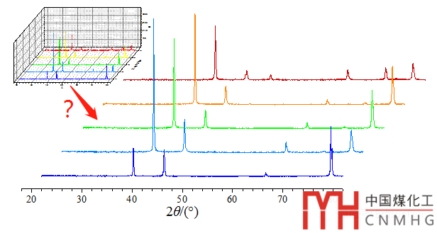 在使用斜方圖繪制XRD時,要注意不同樣品的XRD圖譜的特征基本相似,變化有規(guī)律,這樣繪制的效果比較好。如果不同XRD圖譜有的基線上揚(yáng)、變化突兀、強(qiáng)度懸殊,繪制出這種斜方圖就顯得雜亂,難以表現(xiàn)出不同樣品之間的變化情況。例如: