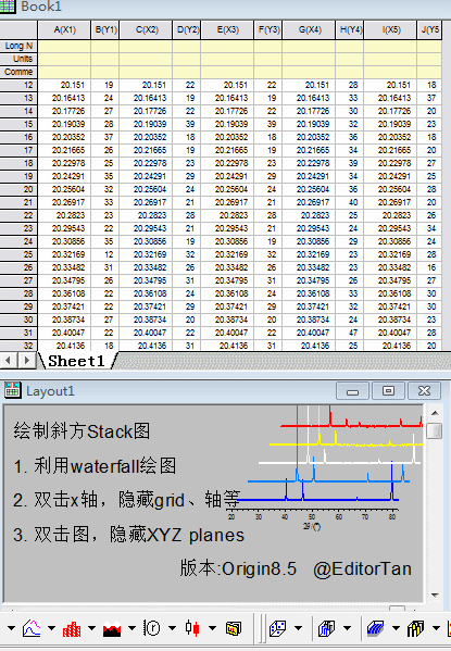 微教程:Origin將3D瀑布圖改為斜方Stack圖