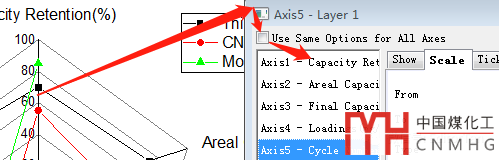 默認(rèn)繪圖時(shí),5根坐標(biāo)軸都是統(tǒng)一設(shè)置刻度范圍的,需要去除勾選use Same Options for all Axes解除綁定: