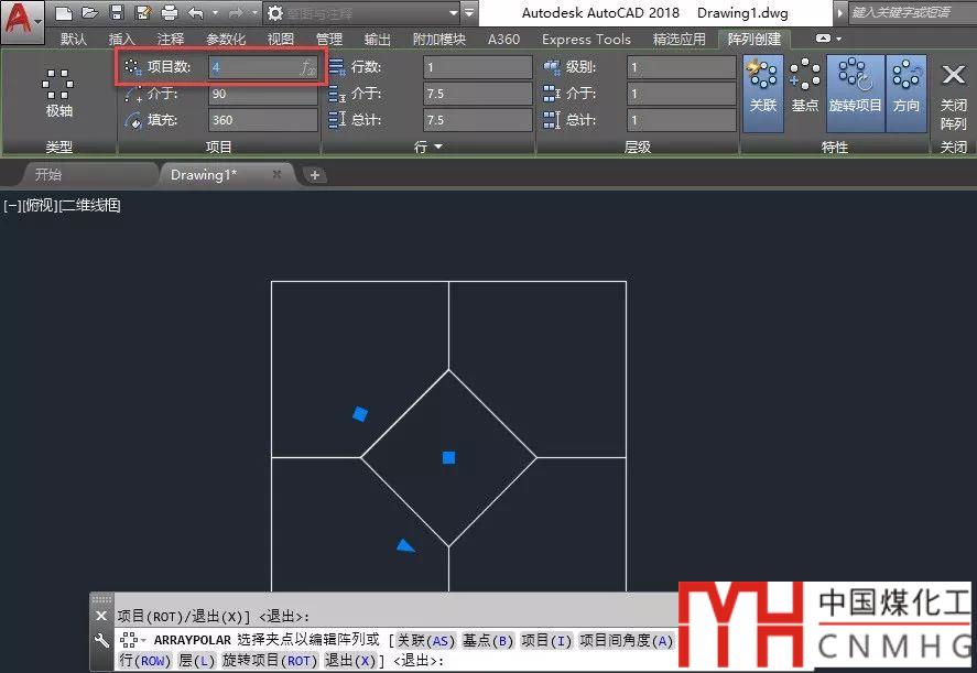 輸入項(xiàng)目數(shù)后光標(biāo)移動到圖形窗口,單擊一下就可以完成陣列,單擊退出陣列命令。
