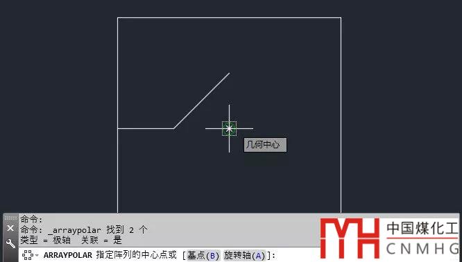 捕捉矩形的幾何中心作為陣列的中心,如下圖所示。