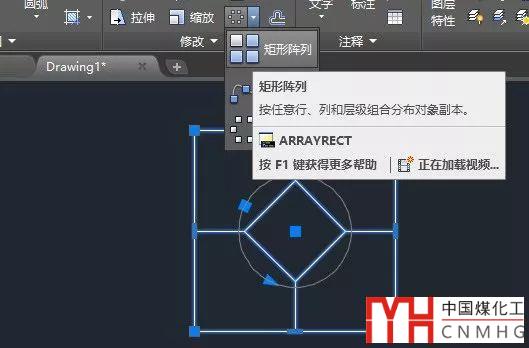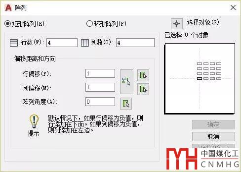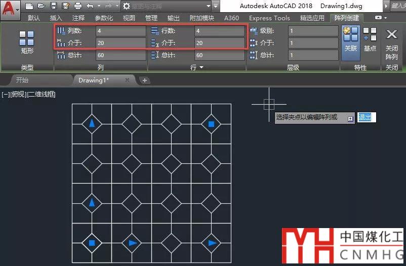 選中剛才創(chuàng)建好的單元圖案,執(zhí)行矩形陣列命令,如下圖所示。
