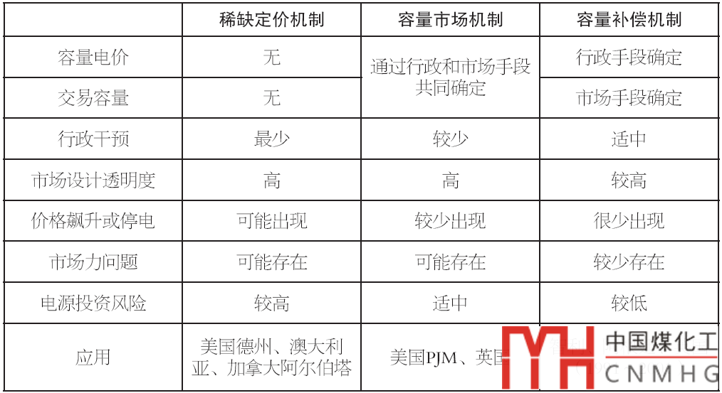 我國(guó)的國(guó)情要求加快建立發(fā)電容量成本回收機(jī)制。與發(fā)達(dá)國(guó)家電力需求已進(jìn)入低速增長(zhǎng)的飽和發(fā)展階段不同,我國(guó)正處于經(jīng)濟(jì)、社會(huì)與能源的多重轉(zhuǎn)型增長(zhǎng)期,電力需求預(yù)計(jì)仍將維持中高速增長(zhǎng),由于用電負(fù)荷特性的快速變化(居民和第三產(chǎn)業(yè)用電快速增長(zhǎng)),疊加電源側(cè)高比例可再生能源出力的不穩(wěn)定性,電力市場(chǎng)價(jià)格出現(xiàn)大幅波動(dòng)的可能性上升,單一電能量?jī)r(jià)格信號(hào)在激勵(lì)新增電源投資、保障電力長(zhǎng)期平穩(wěn)供給方面難以發(fā)揮作用,市場(chǎng)化與清潔化雙重要求增加了我國(guó)發(fā)電容量機(jī)制建設(shè)的緊迫性。中發(fā)9號(hào)文印發(fā)前,我國(guó)電源側(cè)采用單一電能量?jī)r(jià)格的上網(wǎng)電價(jià)機(jī)制,發(fā)電企業(yè)通過獲得基數(shù)電量指標(biāo),執(zhí)行標(biāo)桿電價(jià)的方式,實(shí)現(xiàn)對(duì)發(fā)電容量成本的補(bǔ)償。中發(fā)9號(hào)文印發(fā)后,隨著市場(chǎng)化交易規(guī)模的不斷擴(kuò)大,通過基數(shù)電量和標(biāo)桿電價(jià)回收發(fā)電容量成本越來越少,發(fā)電企業(yè)普遍面臨經(jīng)營(yíng)虧損風(fēng)險(xiǎn)。還要注意到,電力現(xiàn)貨市場(chǎng)加速推進(jìn)使得發(fā)電容量成本回收問題面臨更為嚴(yán)峻的形勢(shì)。首批現(xiàn)貨試點(diǎn)的試結(jié)算運(yùn)行結(jié)果表明,現(xiàn)貨市場(chǎng)建設(shè)初期,現(xiàn)行中長(zhǎng)期交易機(jī)制仍不完善。在以更好消納可再生能源為突出特點(diǎn)的現(xiàn)貨市場(chǎng)交易中,現(xiàn)貨價(jià)格出現(xiàn)了持續(xù)走低,用戶簽訂中長(zhǎng)期合同意愿大幅降低,一旦現(xiàn)貨價(jià)格出現(xiàn)大幅波動(dòng),可能導(dǎo)致未簽訂中長(zhǎng)期合同的發(fā)電企業(yè)和用戶暴露在虧損的風(fēng)險(xiǎn)中,危及電力市場(chǎng)的持續(xù)運(yùn)行和長(zhǎng)期的發(fā)電容量充裕性。從發(fā)電容量回收機(jī)制的國(guó)際實(shí)踐經(jīng)驗(yàn)來看,三種實(shí)施路徑各有其特點(diǎn)與適用性(見表1),需要從效率、實(shí)施成本、市場(chǎng)發(fā)展兼容性等方面綜合分析,研究建立最適合當(dāng)前市場(chǎng)發(fā)展階段的發(fā)電容量成本回收機(jī)制。從效率方面看,行政手段決定的容量回收機(jī)制通常被認(rèn)為市場(chǎng)效率較低,容量市場(chǎng)、電能量市場(chǎng)模式引入了市場(chǎng)競(jìng)價(jià)過程,有助于實(shí)現(xiàn)最低成本提供備用容量。從實(shí)施成本看,由于單一電能量市場(chǎng)是市場(chǎng)設(shè)計(jì)的支柱,稀缺定價(jià)機(jī)制和容量補(bǔ)償機(jī)制相對(duì)容易實(shí)施,而建立一個(gè)全新的容量市場(chǎng),可能帶來更多的市場(chǎng)設(shè)計(jì)和兼容性問題,例如市場(chǎng)力和對(duì)容量可用性的監(jiān)管控制。因此,容量補(bǔ)償機(jī)制可能在很短時(shí)間內(nèi)實(shí)施,但是容量市場(chǎng)則可能至少要5~7年才能實(shí)現(xiàn),實(shí)施成本較高。從市場(chǎng)發(fā)展水平看,當(dāng)前我國(guó)電能量市場(chǎng)建設(shè)仍處于起步摸索階段,進(jìn)一步建立容量市場(chǎng)缺乏必要的技術(shù)儲(chǔ)備,存在較大的實(shí)施困難;同時(shí),出于與現(xiàn)狀的平穩(wěn)銜接及各種公共政策需求,若我國(guó)實(shí)施稀缺定價(jià)機(jī)制,則價(jià)格上限的設(shè)定很可能遠(yuǎn)低于合理水平,難以解決容量成本回收要求。表1 各類發(fā)電容量成本回收機(jī)制的特點(diǎn)對(duì)比