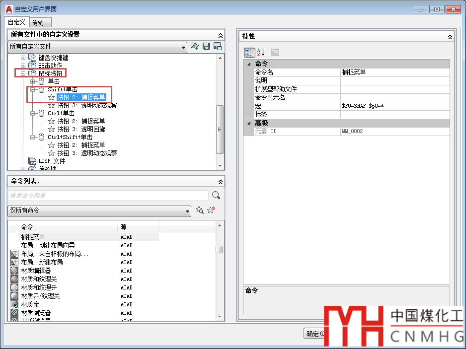 鼠標(biāo)右鍵的相關(guān)功能可以在CUI對話框中定制,不過一般情況沒有必要去修改,如下圖所示。