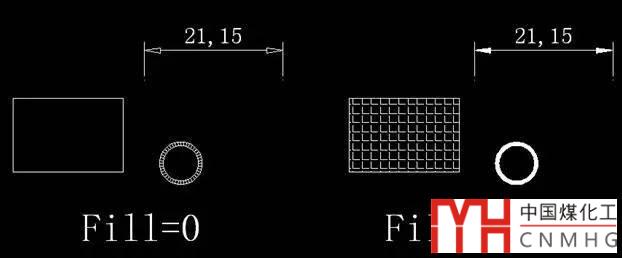 如果輸入Fill命令,設(shè)為OFF(或0),則關(guān)閉實體填充模式,新畫的跡線、具有寬度的多義線(包括標注的箭頭)、填充多邊形等,只會顯示一個輪廓,它們在打印時也不被輸出,如下圖所示。