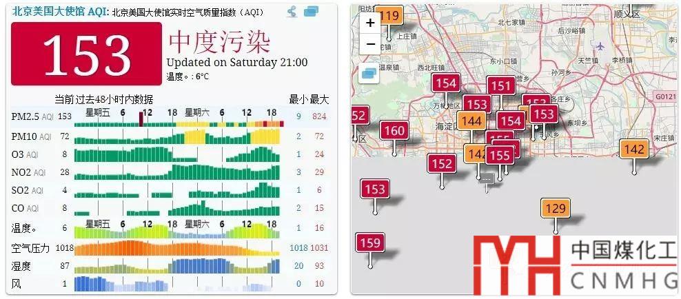 再看北京的數(shù)據(jù),還保持在152屬于中度污染。