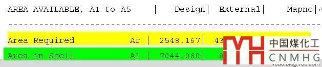 零部件模型中內(nèi)壓所需筒體厚度為5.18mm, 所需要面積為2548.167;整體模型中由于塔彎矩作用,塔的最小厚度需要19.5*0.43333=8.45mm。所以所需面積按比例增大:2548.167*(8.45/5.18)=4156.7mm2