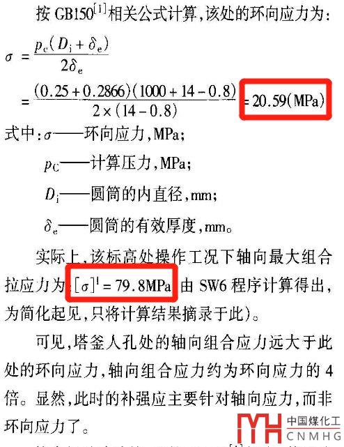 作者結(jié)論是應(yīng)該考慮塔的軸向力對于接管開孔補(bǔ)強(qiáng)的影響。