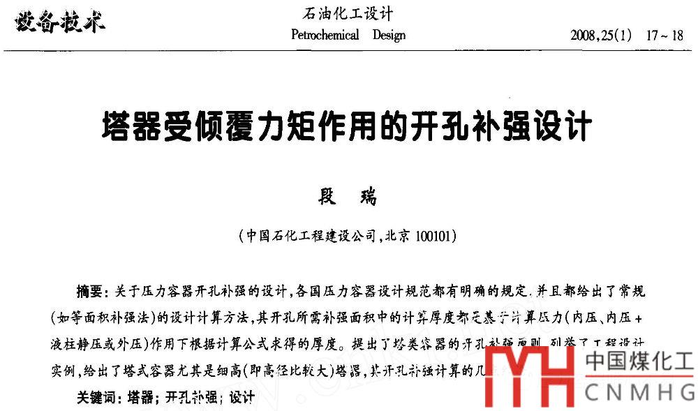 我記得原先看過一篇論文,《塔器受傾覆力矩作用的開孔補(bǔ)強(qiáng)設(shè)計》。