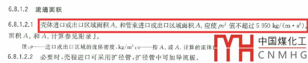 a) 在GB151-2014中,對(duì)于殼程進(jìn)出口的面積和管束進(jìn)口或出口區(qū)域面積要使得pv2不超過一定的值。