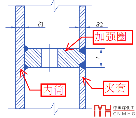 在某項(xiàng)目中,一臺(tái)夾套容器,由于夾套壓力很高,按照夾套完整的包住內(nèi)筒,內(nèi)筒壁厚非常厚。