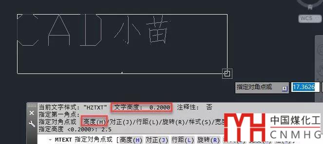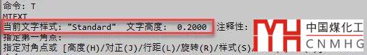 前面已經(jīng)介紹了,在拖動確定多行文字范圍的過程中,通過樣例文字和命令行提示可以知道為文字的當(dāng)前高度是否合適,所以我們不要著急確定多行文字的范圍,最好先設(shè)置文字高度,輸入H后回車,輸入文字高度值后回車,如下圖所示。
