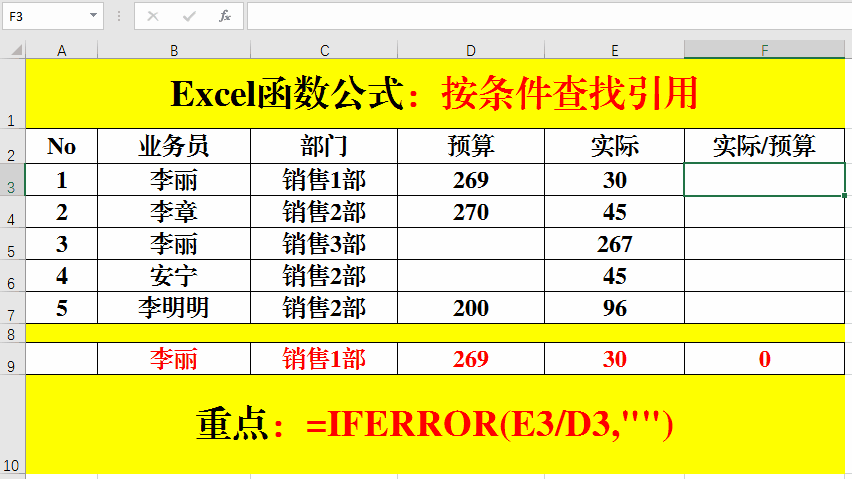 2、輸入公式:=IFERROR(E3/D3,"")。