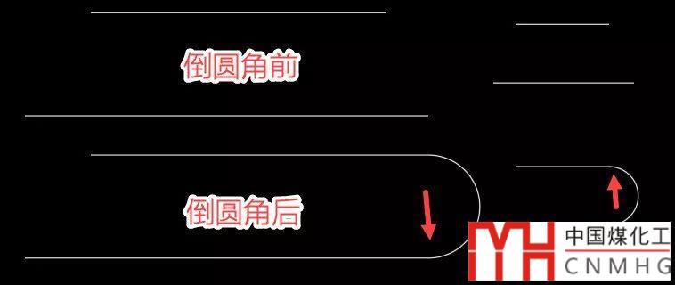 圓角功能不僅可以對(duì)交叉的線進(jìn)行倒圓角,對(duì)平行線也能倒圓角,而且處理方式比較特殊:設(shè)置的圓角半徑不起作用了,會(huì)用平行線的間距作為圓角的直徑,用一個(gè)半圓將兩條平行線連接起來(lái),如下圖所示。