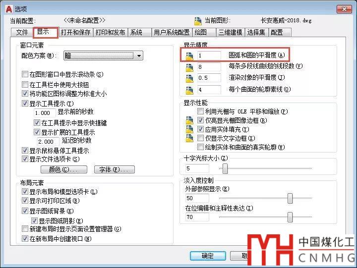 這個(gè)精度默認(rèn)值是1000,如果設(shè)置成比較小的數(shù)值,直接畫圓就會(huì)顯示為多邊形,RE也肯定不管用。我此數(shù)值調(diào)整回默認(rèn)值1000后關(guān)閉選項(xiàng)對(duì)話框,奇跡發(fā)生了!