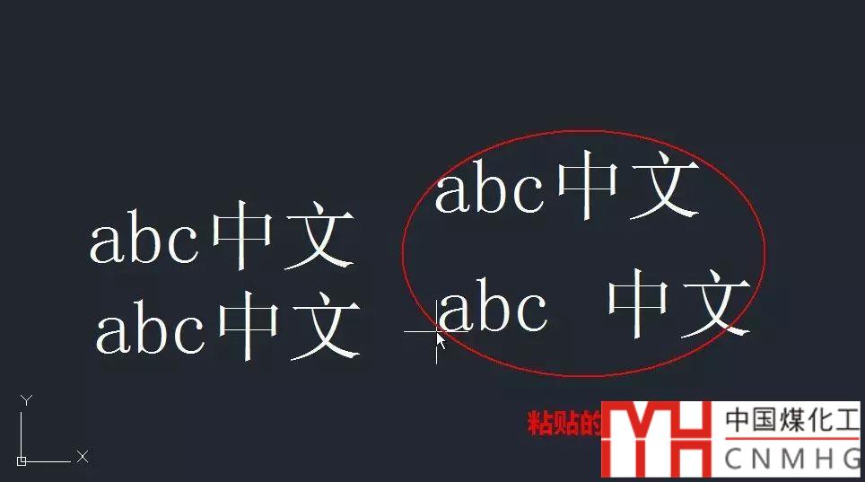 5、從新圖中選中兩個(gè)文字,按CTRL+C復(fù)制,切換到之前的圖紙中,按CTRL+V粘貼,我們會(huì)發(fā)現(xiàn)粘貼后的文字變成了跟當(dāng)前圖相同的效果,如下圖所示。