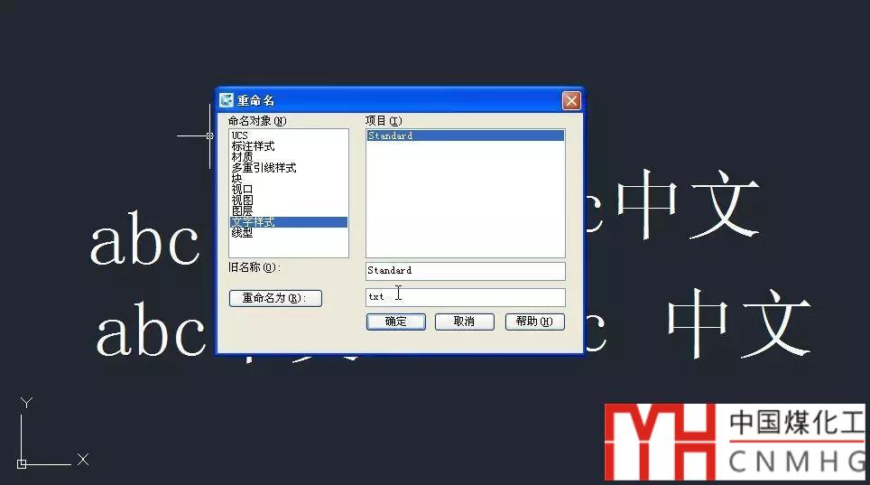 解決辦法:任意一張圖紙中輸入REN,回車(chē),打開(kāi)重命名對(duì)話框,選中重名的文字樣式,修改成其他名字,如下圖所示。