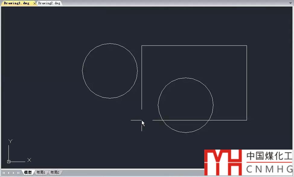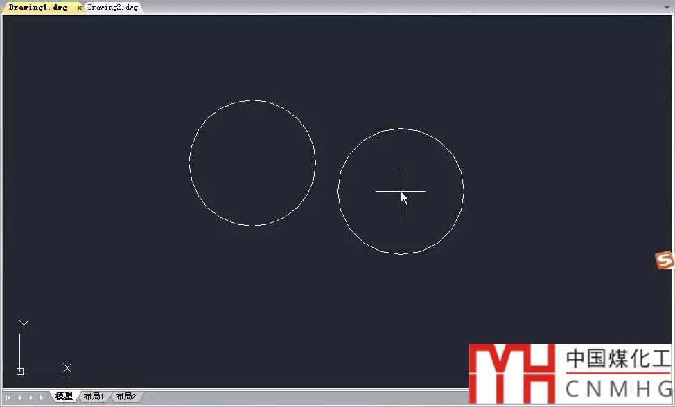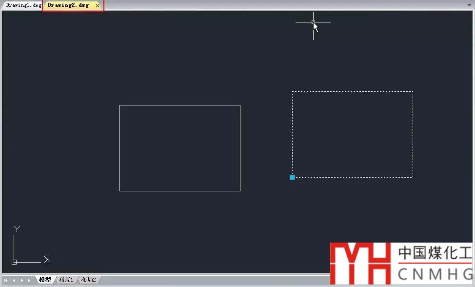 3、選擇矩形圖塊,按CTRL+C,切換到前一張圖紙(浩辰CAD或AUTOCAD 2014以上版本可以直接單擊文件標(biāo)簽欄的文件名,低版本可以按CTRL+TAB或從窗口菜單中選擇),按CTRL+V, 我們可以看到明明復(fù)制的是矩形,但粘貼過(guò)來(lái)的卻是圓,如下圖所示。