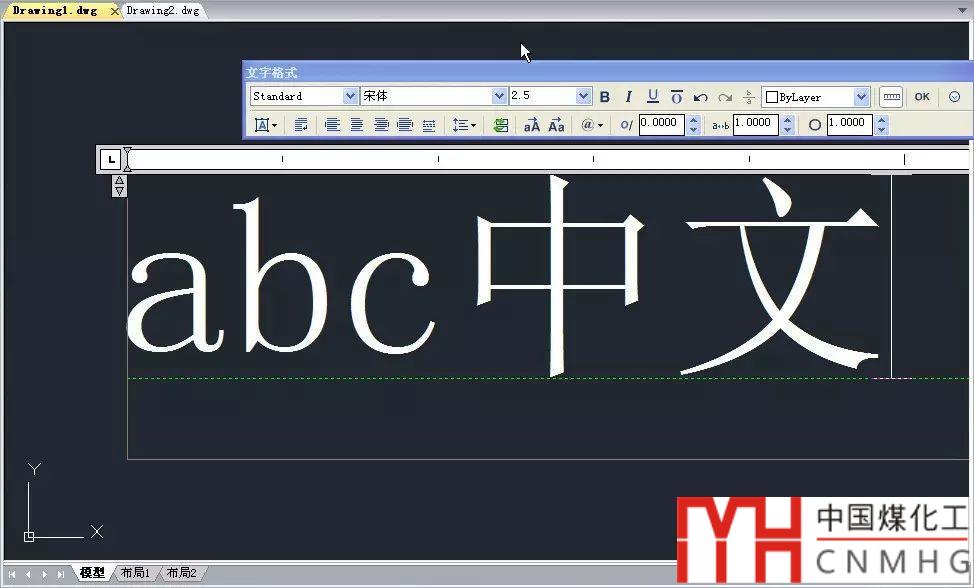 我們可以看到由于設(shè)置了CAD字體,但沒(méi)有設(shè)置大字體,多行文字中中文自動(dòng)被替換成宋體,而單行文字中則只能顯示為問(wèn)號(hào)了。而且由于在多行文字中字體被替換,炸開(kāi)后漢字跟字母分開(kāi)了,這個(gè)后面我們可以不管,只關(guān)注字體的效果。