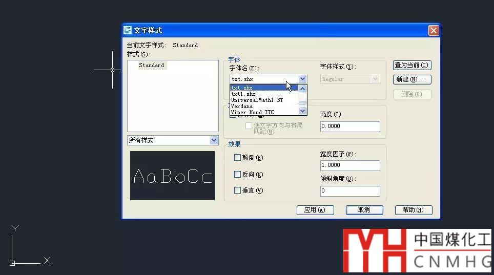 3、單擊新建按鈕,新建一張空?qǐng)D,輸入ST,回車(chē),打開(kāi)標(biāo)注樣式對(duì)話框,點(diǎn)開(kāi)字體列表,輸入TX,找到TXT.SHX,如下圖所示。將字體修改成txt.shx,如果你的版本中默認(rèn)就是txt.shx,則不用修改,如果使用了大字體,取消勾選“使用大字體”。