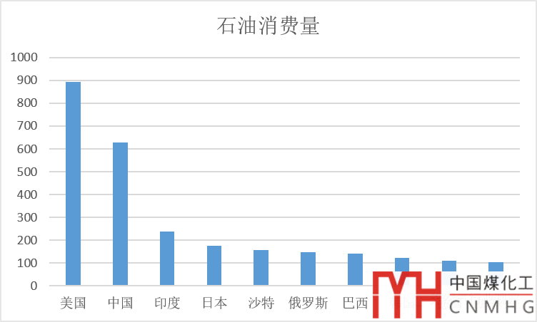 2018年,中國石油消費量達(dá)到628百萬噸,同比增長5.1%,占全球總消費量14%,僅次于全球第一大經(jīng)濟(jì)體美國892.8萬噸。