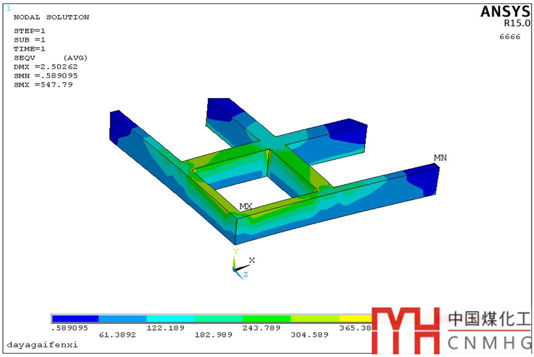圖22:試壓平蓋加強(qiáng)結(jié)構(gòu)的等效應(yīng)力云圖