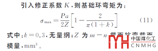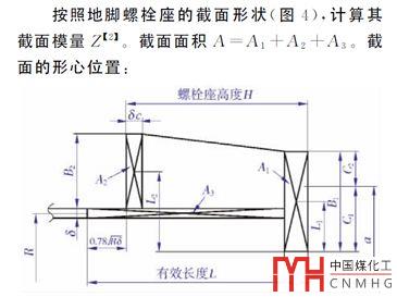 對(duì)于上式中抗彎截面模量Z的計(jì)算,如果地腳螺栓座采用的是分塊蓋板,Z只計(jì)算基礎(chǔ)環(huán)板的。如果采用的是整體圓環(huán)式蓋板,可以蓋板與基礎(chǔ)環(huán)板之間的筒體計(jì)入,如下圖所示,至于地腳螺栓座中的肋板和螺栓孔的作用則忽略不計(jì)。