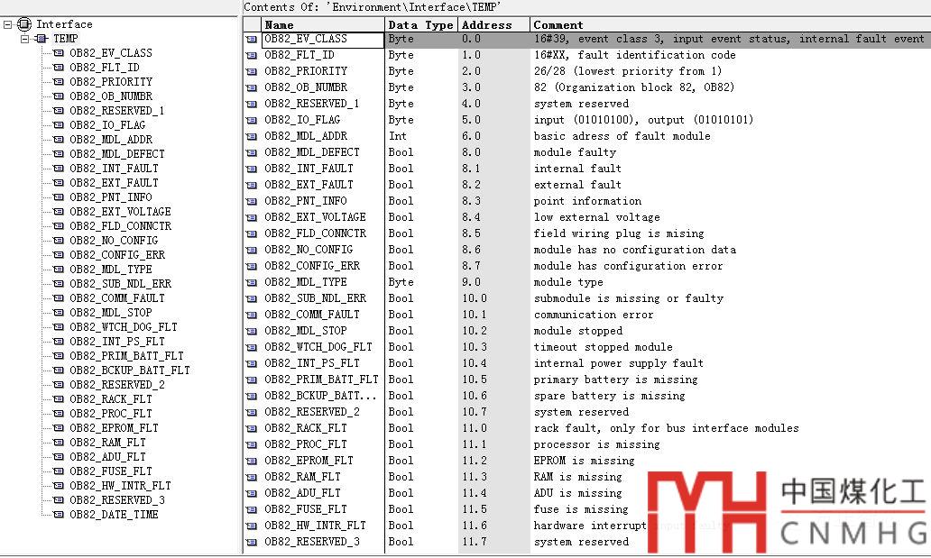 OB82是PLC的操作系統(tǒng)和用戶程序溝通的橋梁,它有很多的臨時(shí)變量,如下圖:
