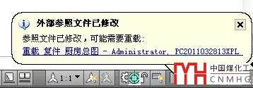 然后打開A圖紙,在A圖紙中新畫或刪除一些圖形后保存,我們返回B,會發(fā)現(xiàn)CAD的右下角會彈出一個氣泡提示,讓我們重載外部參照,如下圖所示。