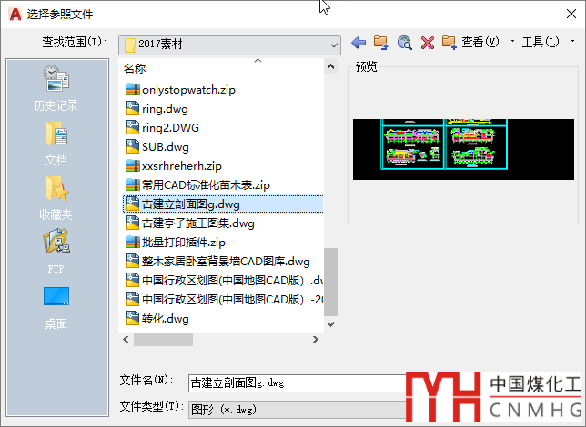 1、選擇“插入>附著”,或輸入ATTACH命令后回車,啟動”選擇參照文件”對話框,選擇將要插入的DWG文件,單擊“打開”按鈕,如下圖所示。