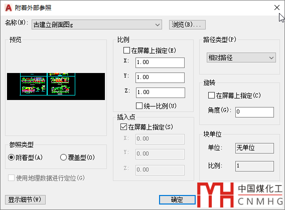 彈出“附著外部參照”對話框,如下圖所示。