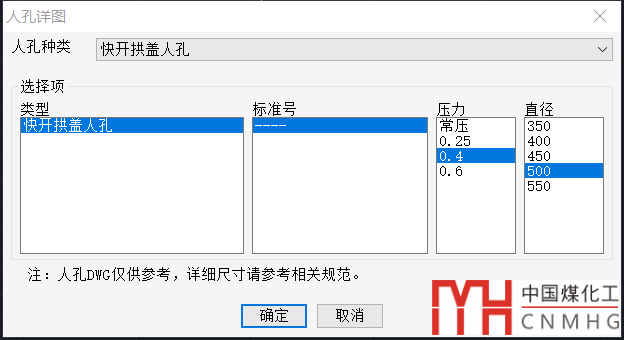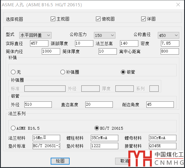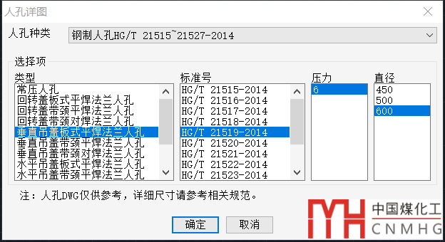 VCAD含有各種人孔,比如鋼制人孔手孔HG/T 21515-2014~HG/T 21531-2014的所有人手孔自動出圖。