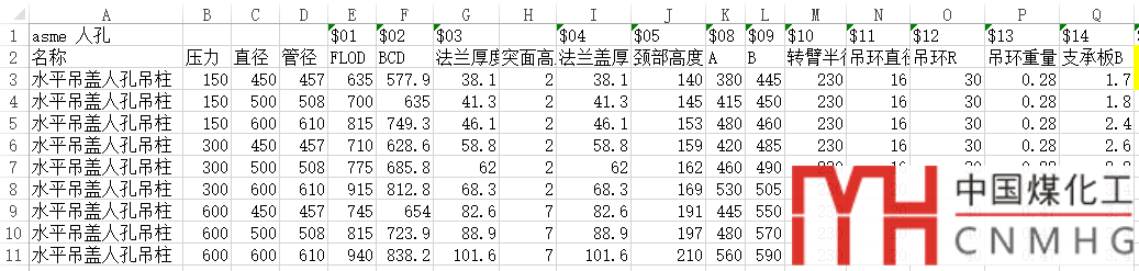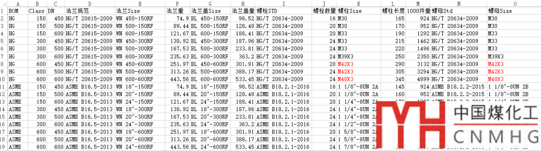 2. 法蘭系列分為ASME B16.5和HG/T 20615,并出對應的法蘭(蓋),螺柱,螺母等明細表。