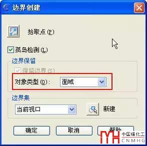如果出現(xiàn)類似情況,最基本的解決辦法是放大圖形的各個交點處,看看是否存在缺口或細小的交叉,通過修剪、延伸或倒圓角等功能將有問題的交點處理好。但有時 缺口或交叉很小,需要放大很多倍才能看出來,交點又比較多,檢查起來也比較麻煩,可以想一些其他辦法,比如用PE命令連接所有線,如果有的地方連接不起 來,說明這個交點有問題,但多段線不能處理自交叉,比如說出現(xiàn)類似“8”這樣的自交叉圖形。還有一種方法,就是利用BO(BOUNDARY)邊界命令,將 生成對象類型設置成面域即可,邊界對邊界的搜索跟填充類似,可以通過“拾取點”或“新建邊界集”的方式來選擇區(qū)域,比如上面的圖形,只需在多邊形和圓之前 拾取點,就可以自動生成兩個面域。使用邊界命令的好處是會忽略封閉區(qū)域外的交叉或自相交部分,同時還可以忽略細小的缺口。邊界的對話框如下圖所示。