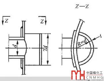 某項(xiàng)目中低溫洗工段4臺(tái)氨冷器殼程進(jìn)(液體)出(氣體)口位置距離較近,故氣體出口處及附近吸力很大,進(jìn)口處的液體易直接被出口吸出,而從出口出去的氣體是直接進(jìn)入氨壓機(jī)的,如果氣體中有液體會(huì)導(dǎo)致氨壓機(jī)無法工作,為了防止這種情況的發(fā)生,工藝在條件表中提出了一種防進(jìn)口液體被直接吸出的帶蓋板型防沖板.