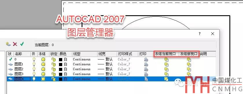 AUTOCAD和浩辰CAD較高版本都支持這些功能,但如果使用的是AUTOCAD低版本,比如AUTOCAD 2007,或其他一些國(guó)產(chǎn)CAD,就可能只提供了視口圖層凍結(jié)的功能,而沒有提供這些替代特性的設(shè)置,如下圖所示。