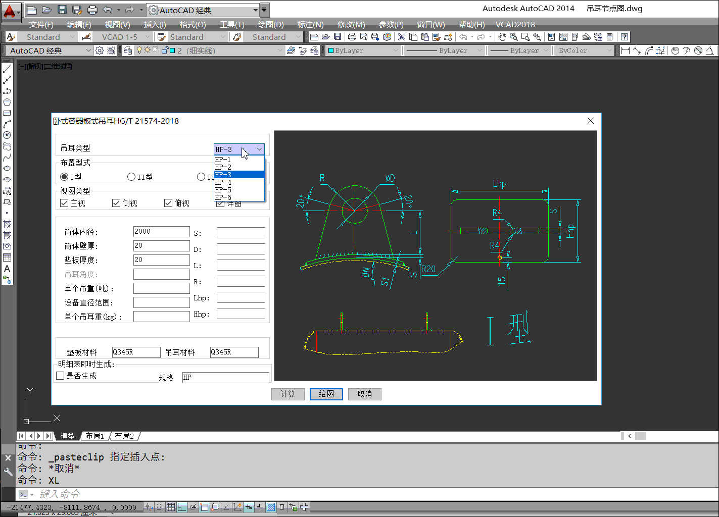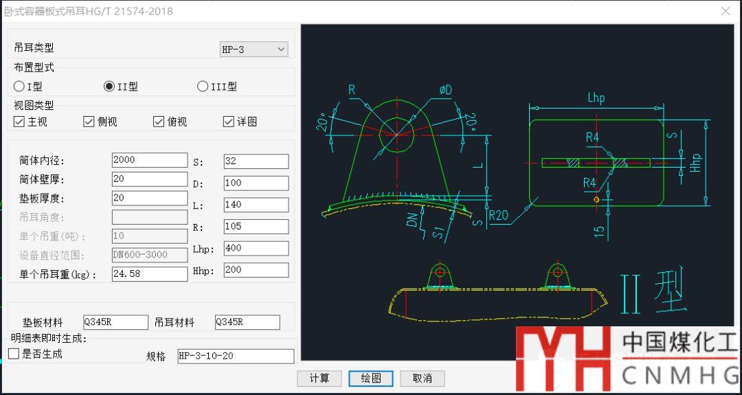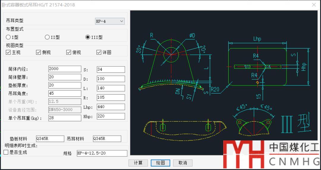 VCAD更新了臥式容器板式吊耳,其程序界面如下: