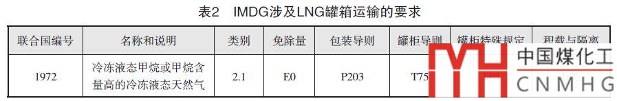 也即是說,LNG罐箱堆載只需按照《國際海運危險貨物規(guī)則》(簡稱IMDG)執(zhí)行即可,按照IMDG規(guī)則,通過中國船級社CCS梳理,涉及LNG 罐箱運輸?shù)囊笕绫? 所示。
