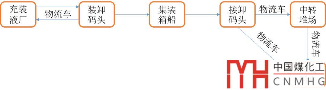 LNG罐箱無法直接在LNG碼頭進(jìn)行充裝和裝卸,需要從?;反a頭卸下空箱,然后運到充裝液廠,充裝完后再運回?;反a頭裝船;之后再由集裝箱船運回國內(nèi)?;芳b箱碼頭進(jìn)行接卸,如果是大規(guī)模進(jìn)口無法直接快速送達(dá)至終端用戶的話,還得需要建立幾個中轉(zhuǎn)堆場進(jìn)行臨時堆放存儲,最后再由中轉(zhuǎn)堆場送至終端用戶。