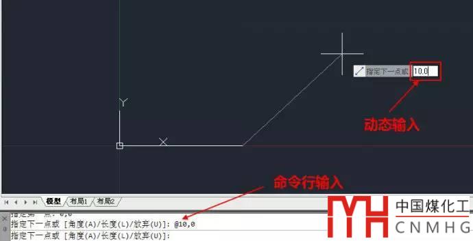 注意:上面的相對(duì)坐標(biāo)在命令行輸入時(shí)要加上@,如果在圖形窗口的動(dòng)態(tài)輸入框中輸入不必加上@,因?yàn)閯?dòng)態(tài)輸入默認(rèn)輸入的就是相對(duì)坐標(biāo),如下圖所示。