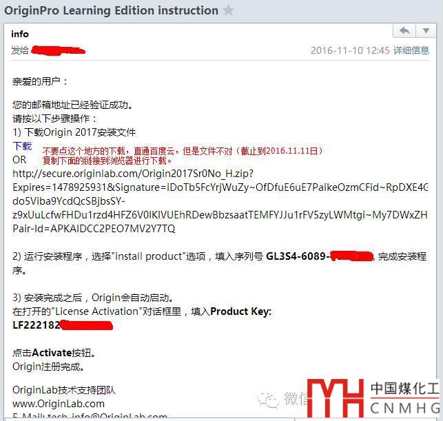 激活郵箱截圖,比2016版好的地方在于,直接給了Key,不需要在線生成。