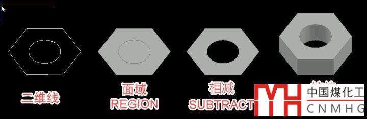 面域是從連續(xù)封閉的線來生成的,合并和相減的操作可以通過修建二維圖形完成,但如果是中空的界面,內(nèi)外輪廓線不相交,只能生成兩個(gè)面域后,將兩個(gè)面域相減。