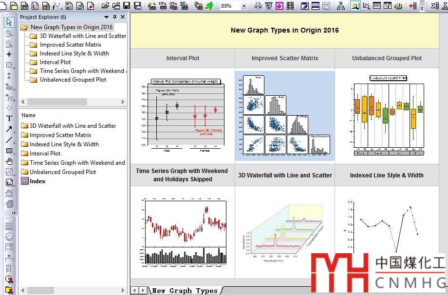 OriginLab內(nèi)置了不同圖形的樣本文件(Sample Projects),并附有相關(guān)圖形繪制過程的簡單介紹。