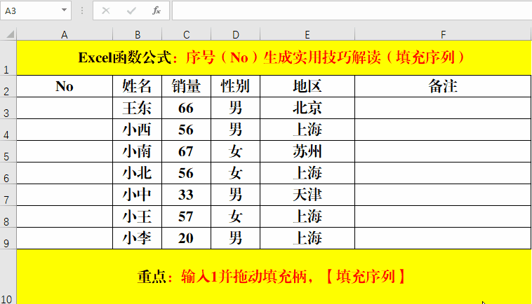 本文主要講解了序號(NO)的構建方法,對于一般的構建技巧,大家可能都掌握,但是遇到數(shù)據(jù)篩選,刪除,不規(guī)則填充等情況時,大家可能會手忙腳亂……針對上述情況,本文提供了解決方法。