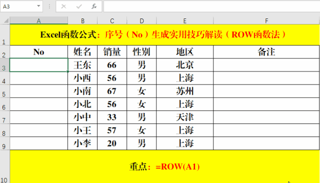 目的:利用ROW函數(shù)生成序號(No)。